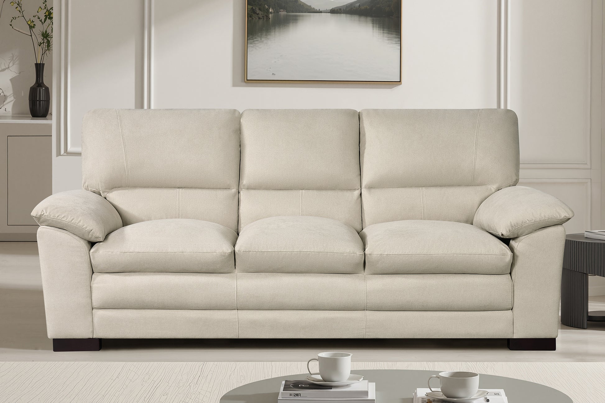 The Compton 3 Seat Sofa is upholstered in high-quality material, offering an excellent balance of durability and comfort.