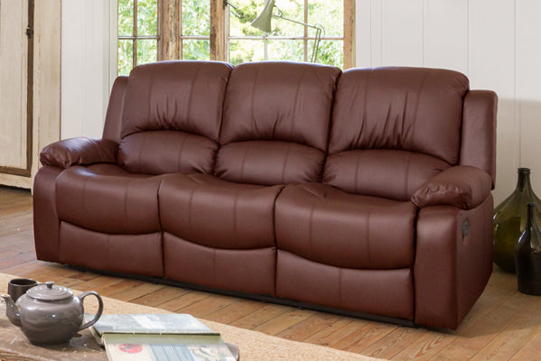The Emsworth 3 Seat Electric Recliner is upholstered in premium leather, offering exceptional durability and a luxurious feel.