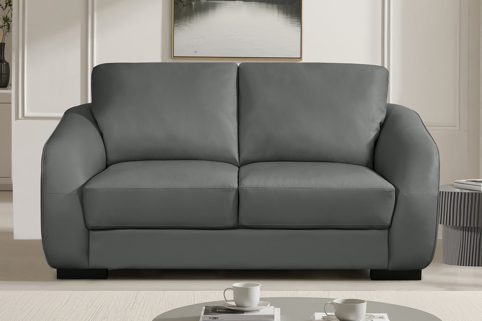 The Howard sofa delivers contemporary comfort with a practical design, upholstered in bonded leather and PU for a sleek and durable finish. Its modern compact design makes it an excellent choice for smaller living spaces or those looking to maximise their room layout. Fibre-filled back cushions provide inviting comfort, while pocket sprung foam seat cushions ensure firmness and resilience, keeping the sofa looking and feeling great over time. With a sprung interior for additional support and durability, the Howard is built for everyday living while retaining its stylish edge. Combining practicality with elegance, this sofa is the perfect choice for anyone seeking a modern yet comfortable addition to their home.