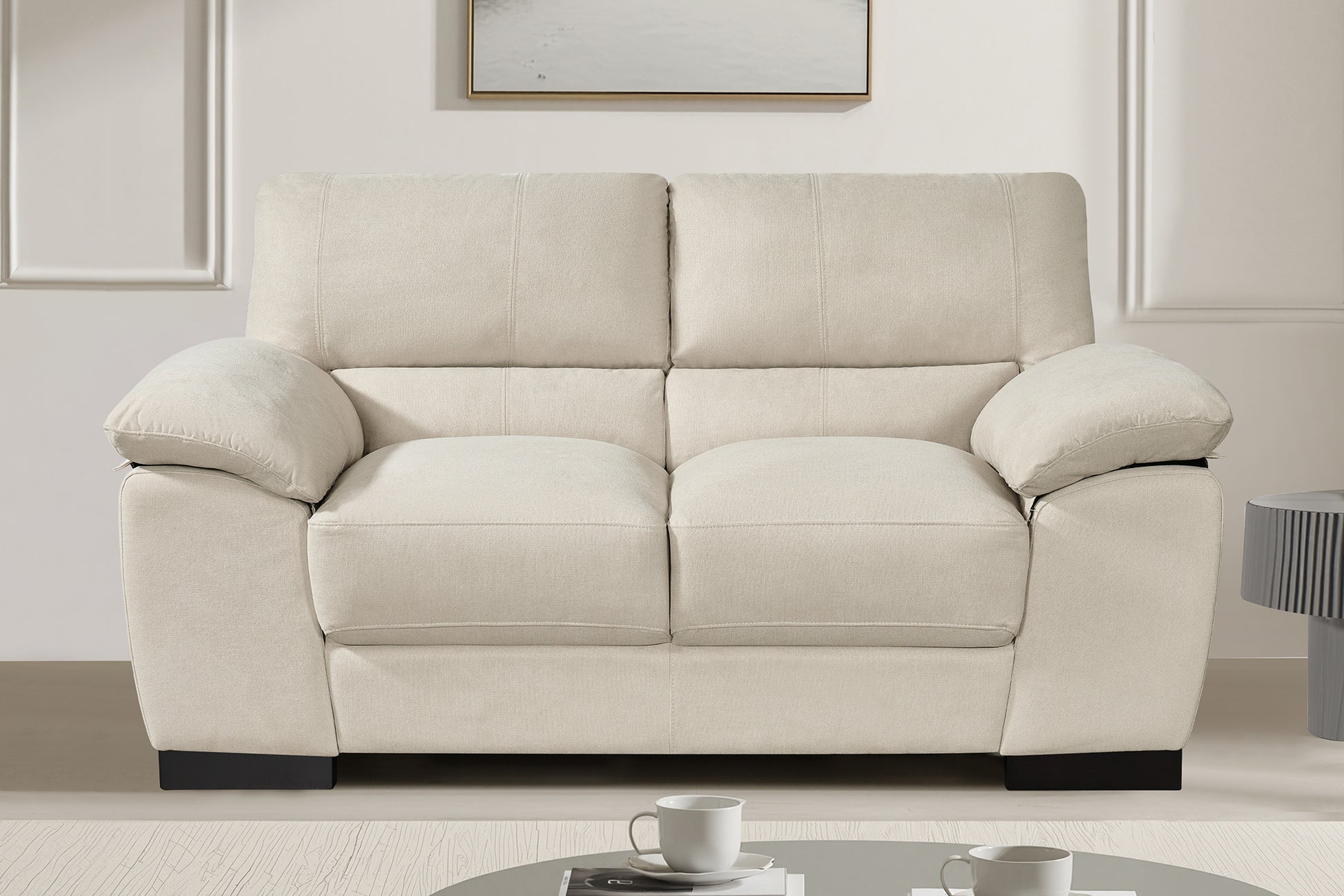 The Jermyn 2 Seat Sofa is upholstered in high-quality material, offering an excellent balance of durability and comfort.