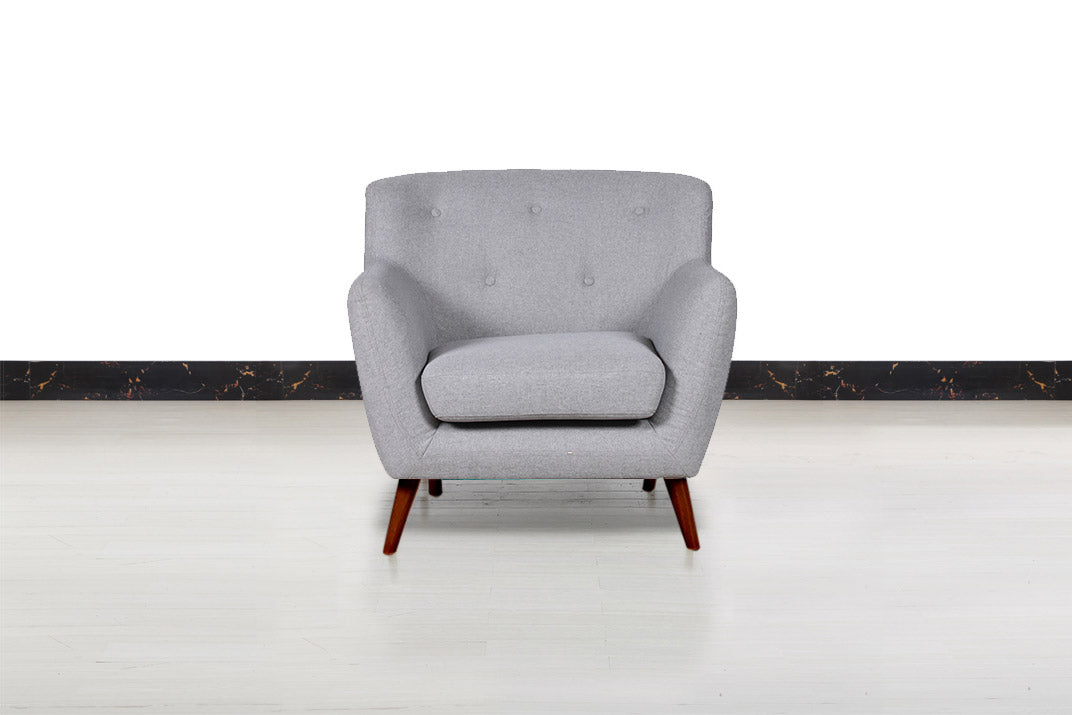 The Mabel Armchair is upholstered in high-quality material, offering an excellent balance of durability and comfort.