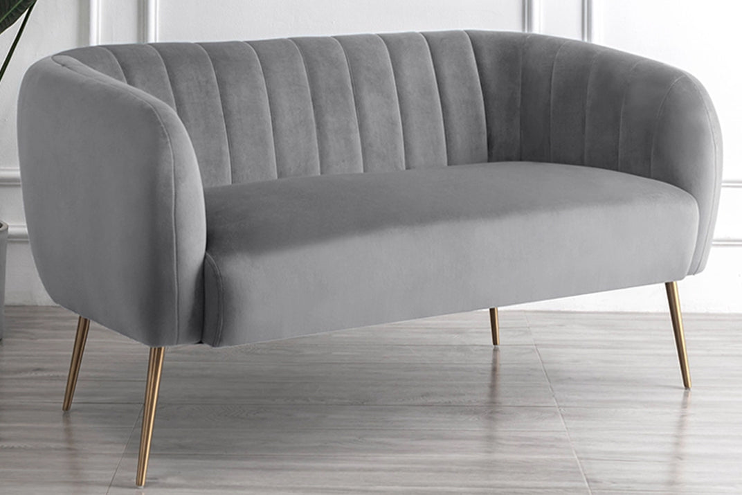 The Marciana 2 Seat Sofa is upholstered in soft, plush velvet, providing a touch of elegance and comfort.